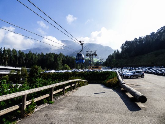 For €18 you buy a return cable car downstairs and after 20 minutes you're upstairs. Please note: if you only buy a one-way ticket upstairs and later you find out you want to take the Bahn back, you pay an extra 13 euros upstairs instead of 9 euros.