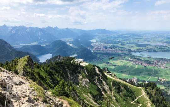 Over 3 hours of westward cruising through hills, forests and mountains and you arrive at the foot of the Alpspitze. Just like the Tegelberg and Zugspitze there is a cable car that can take you to the top. Convenient for the whole family and a beautiful view guaranteed. However, this is also a mountain known for its adventurous via ferrata routes. You can choose between the Alpspitz-Ferrata via ferrata and the Nordwandsteig. If you've never done this before, it is advisable to go up with a guide, which is possible here. Guaranteed thrills!