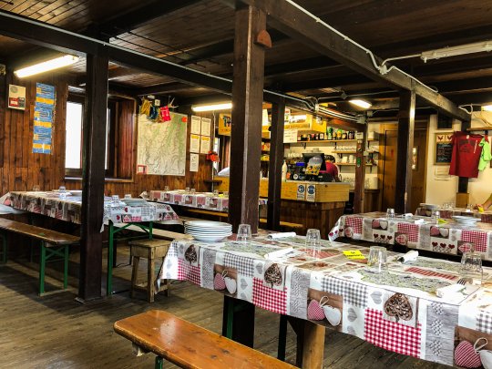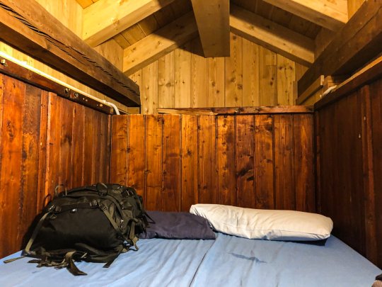 The cabin has its own kitchen and prepares a three-course meal for its guests every day. Pasta as an appetizer, enjoy it, right? From about 10 to half past 11 it gets quiet in the hut. Nice for me, because I slept in a room above the aisle.