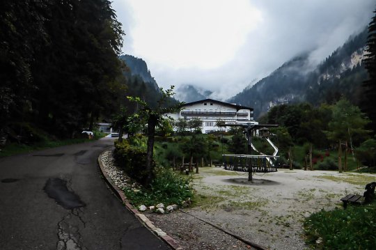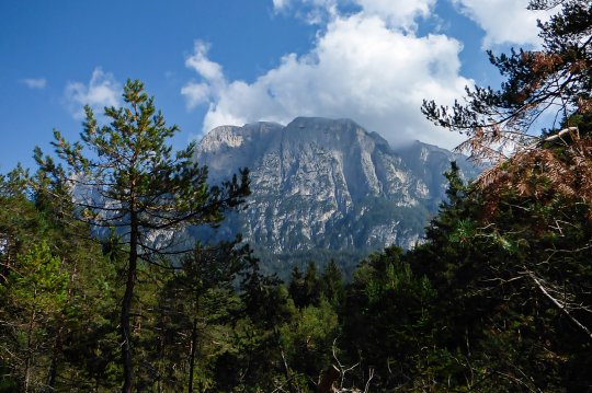 On the last day of this vacation in the Dolomites we decide to take a nice, reasonably short walk through the mountains. Earlier this week we wanted to walk to the beautiful castles that rise above the forest on the wall of the Schlernmassief, but then we couldn't because of a closed hiking trail (read here). Using the walking map and some fresh tips from our landlord, we drew a walking route that partly does not run along the marked paths. We leave our house again, and head for mountain hut Bad Ratzes. After some good searching, reorientation and some barking sheepdogs we find, via some really nice roads, the mountain hut. Unfortunately this turns out not to be a mountain hut but a luxury resort that doesn't look very inviting for passing hikers. So no coffee break. Too bad, but from here the official route no. 3 starts and we continue in good spirits. Bad Ratzes is a good benchmark on the map to start your hiking route!