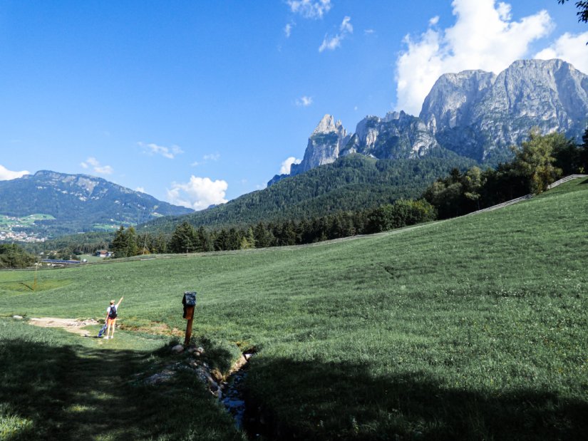 Walking in the Italian mountains along old castles. A child-friendly route in beautiful surroundi...